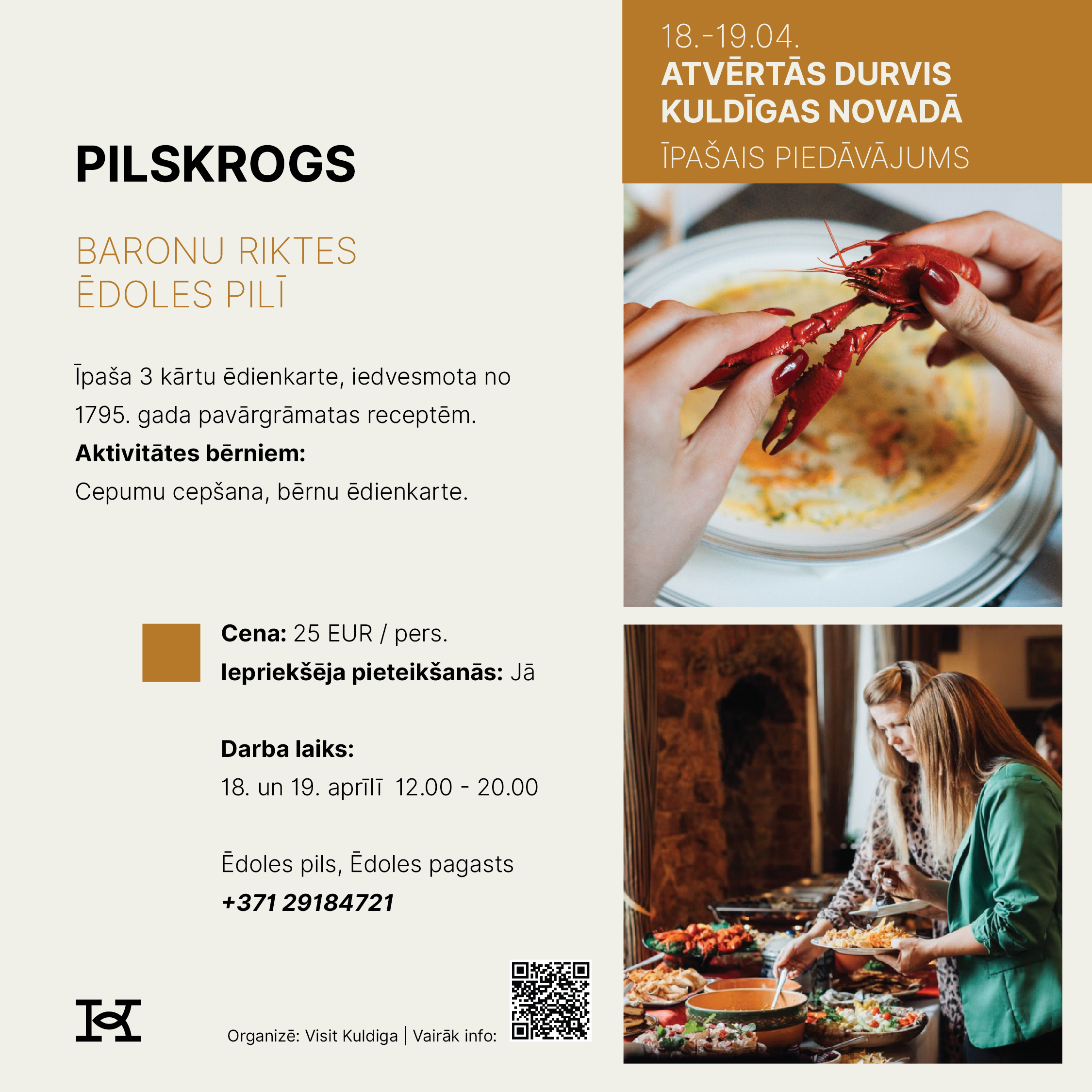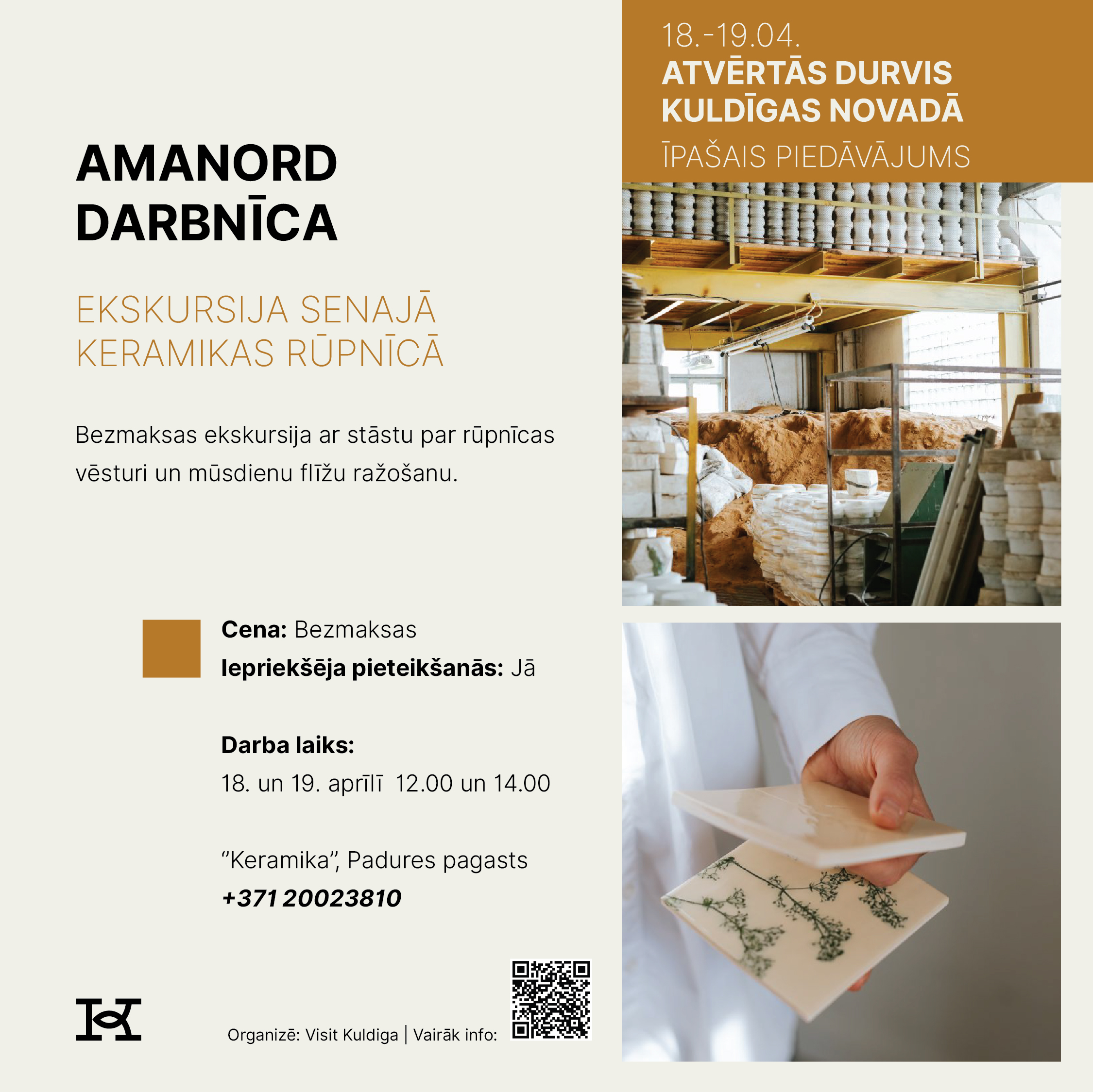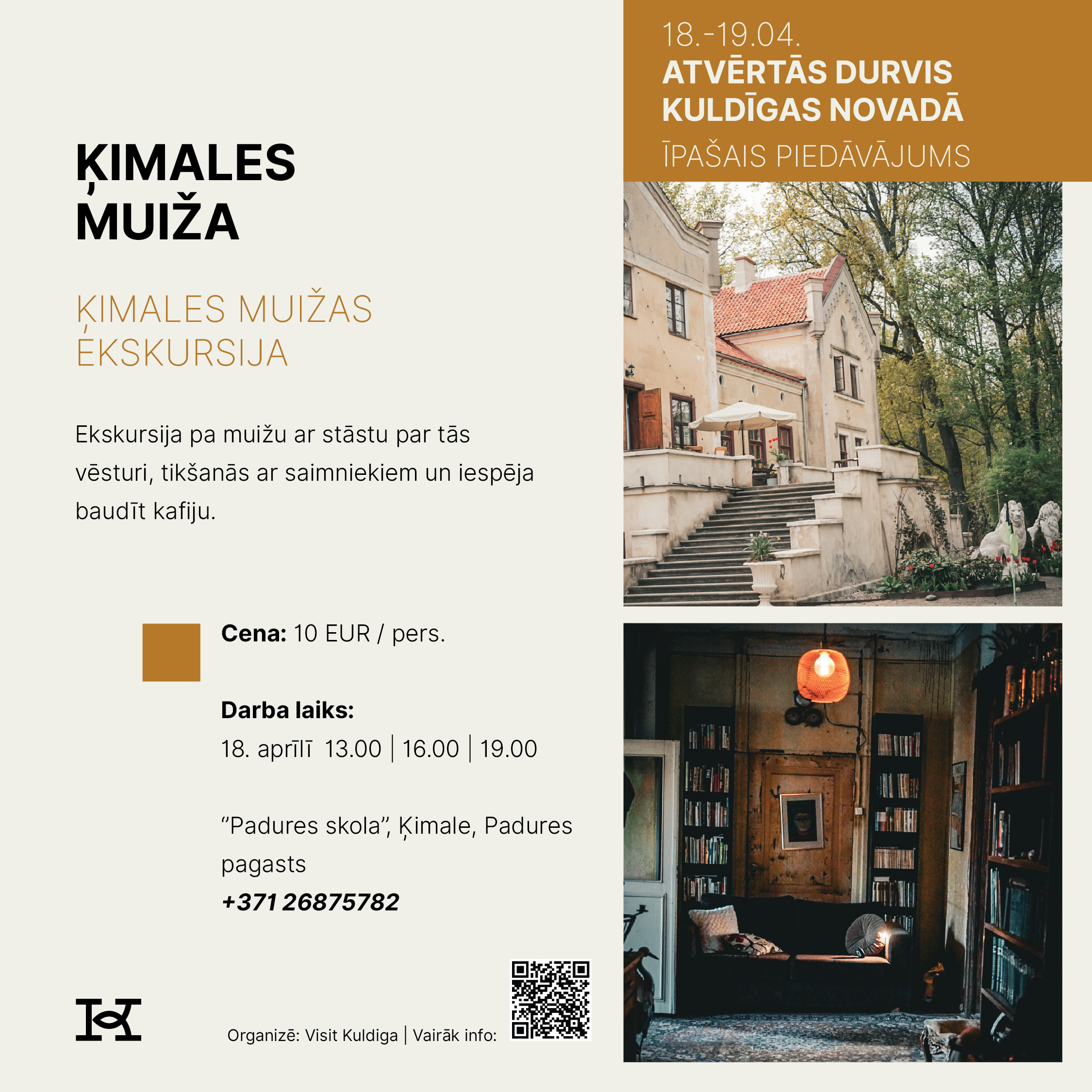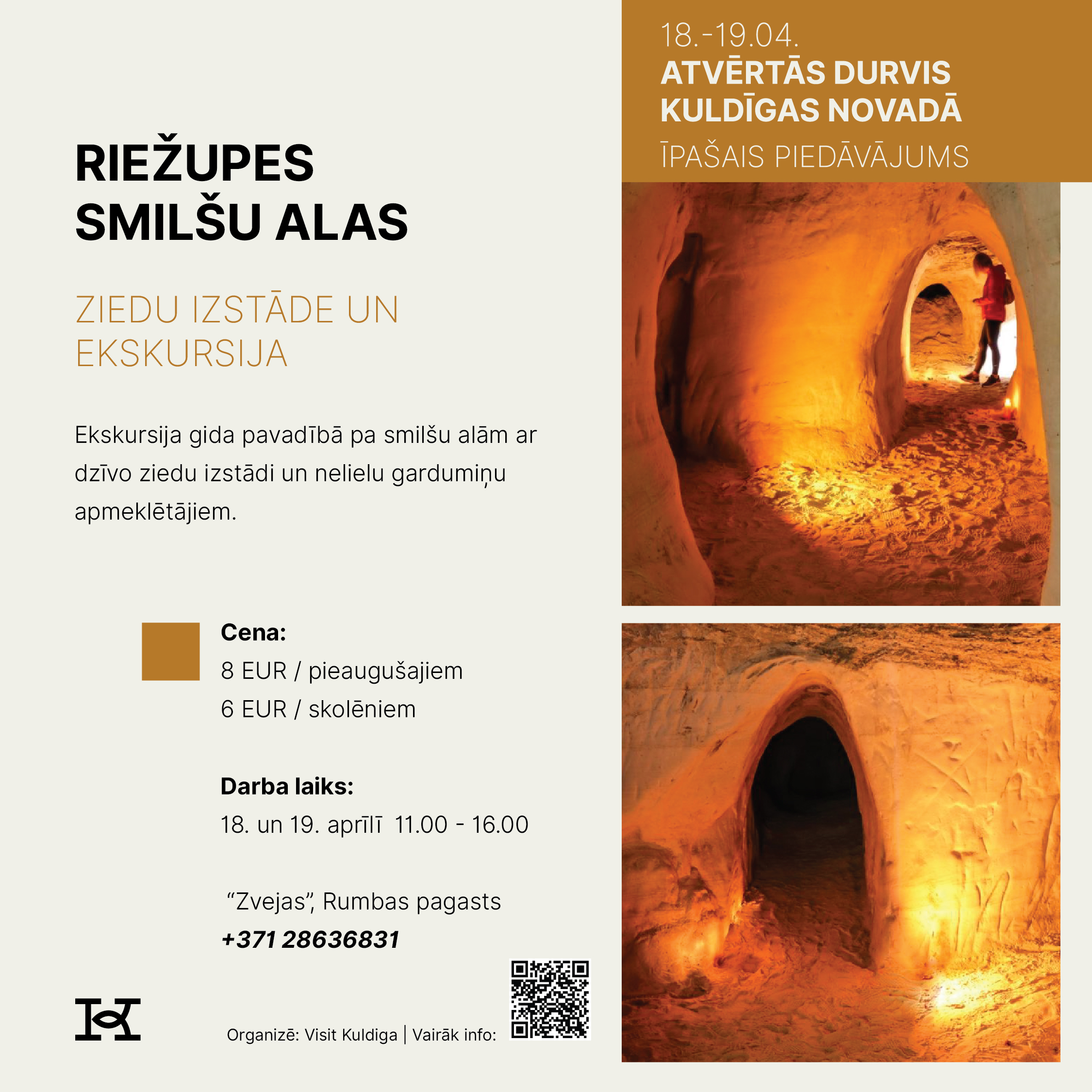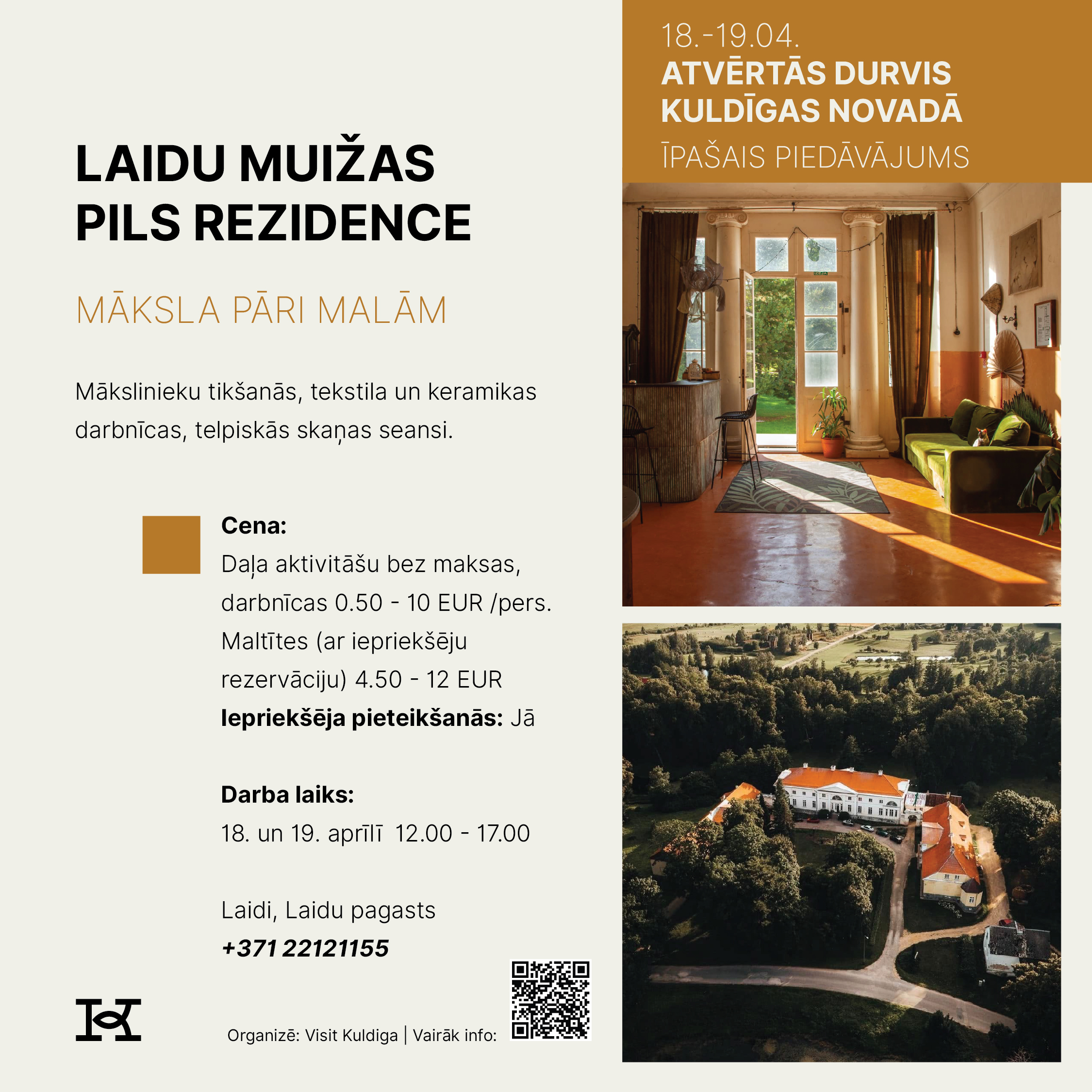 18. un 19. aprīlī Kuldīgas novads aicina doties izzinošā un pavasarīgā ceļojumā, iepazīstot novada tūrisma piedāvājumu Atvērto durvju dienās. Divu dienu garumā apskates vietas, muzeji, darbnīcas, saimniecības, naktsmītnes un aktīvās atpūtas piedāvātāji sagatavos īpašus sezonas atklāšanas notikumus un akcijas piedāvājumus, kas būs pieejami tikai šajā nedēļas nogalē.
