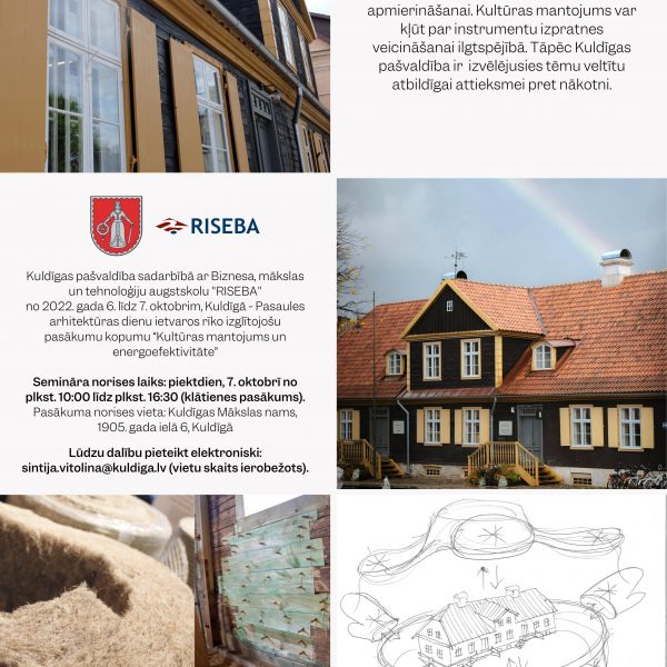 Aicina pieteikties 7. oktobrī uz izglītojošu pasākumu kopumu “Kultūras mantojums un energoefektivitāte” Ričards Sotaks04.10.2022 Vecpilsēta