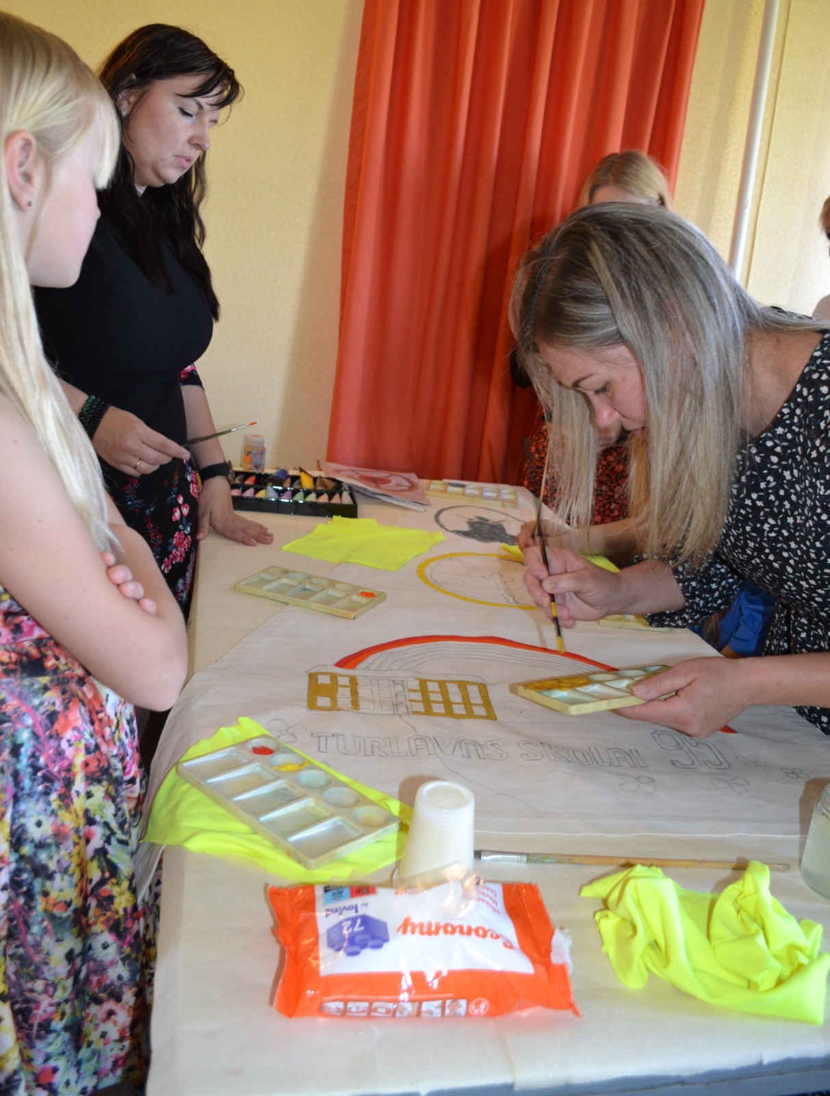 Kuldīgā, skvērā pie Adatu fabrikas – ikviens interesents tika aicināts piedalīties radošā darbnīcā kopā ar māksliniekiem Ievu Vītolu-Lindkvistu un Oli Lindkvistu. Kopīgiem spēkiem un idejām tika apgleznotu bura un turpat arī pacelta.