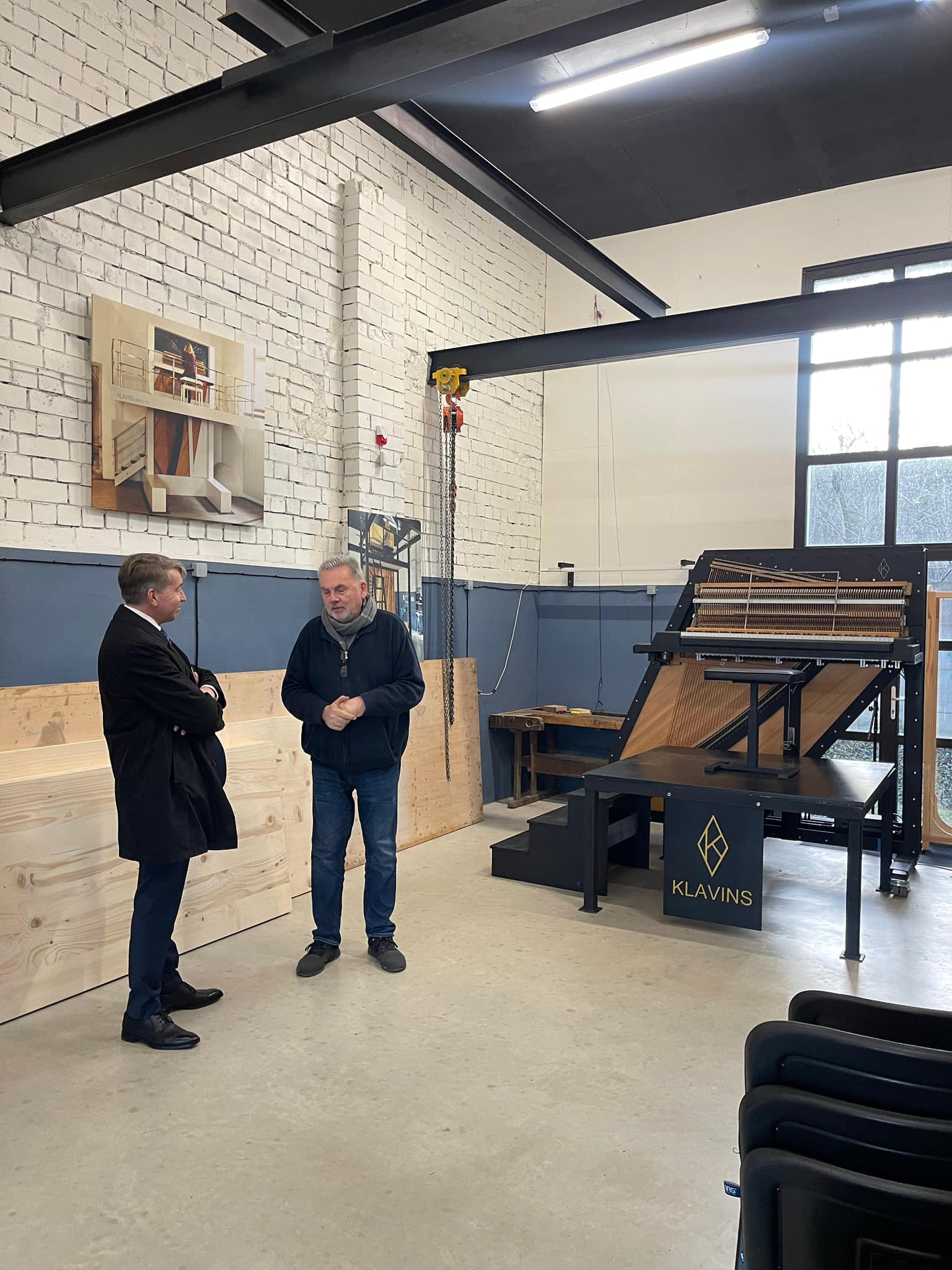 Radoši industriālā Kaļķu ielas kvartālā ministrs tikās ar uzņēmuma pārstāvi Robertu Jansonu, kurš pastāstīja, kā pirms četriem gadiem no pamestas garāžas teritorija kļuvusi par mājvietu vietējās uzņēmējdarbības attīstībai.