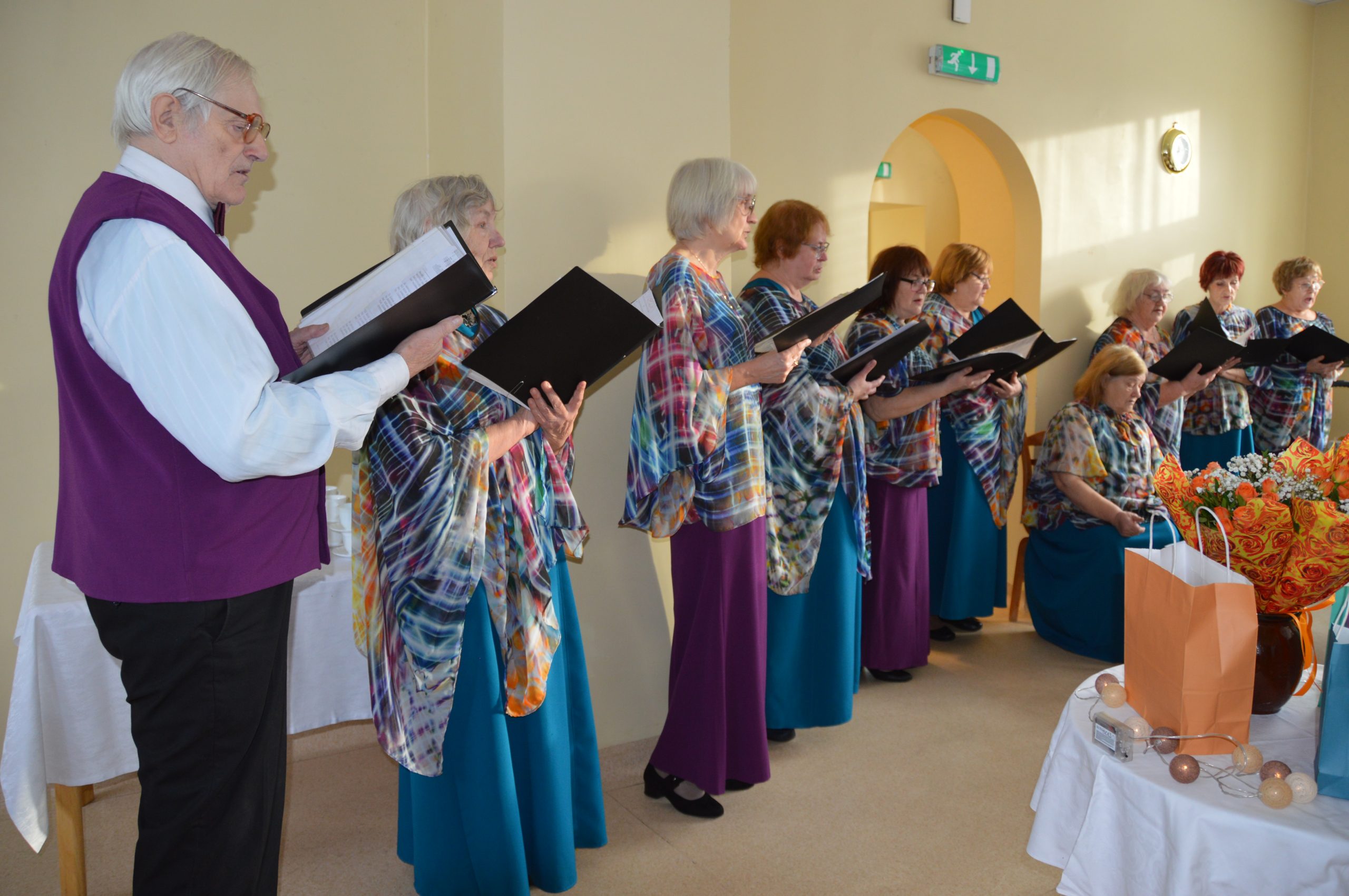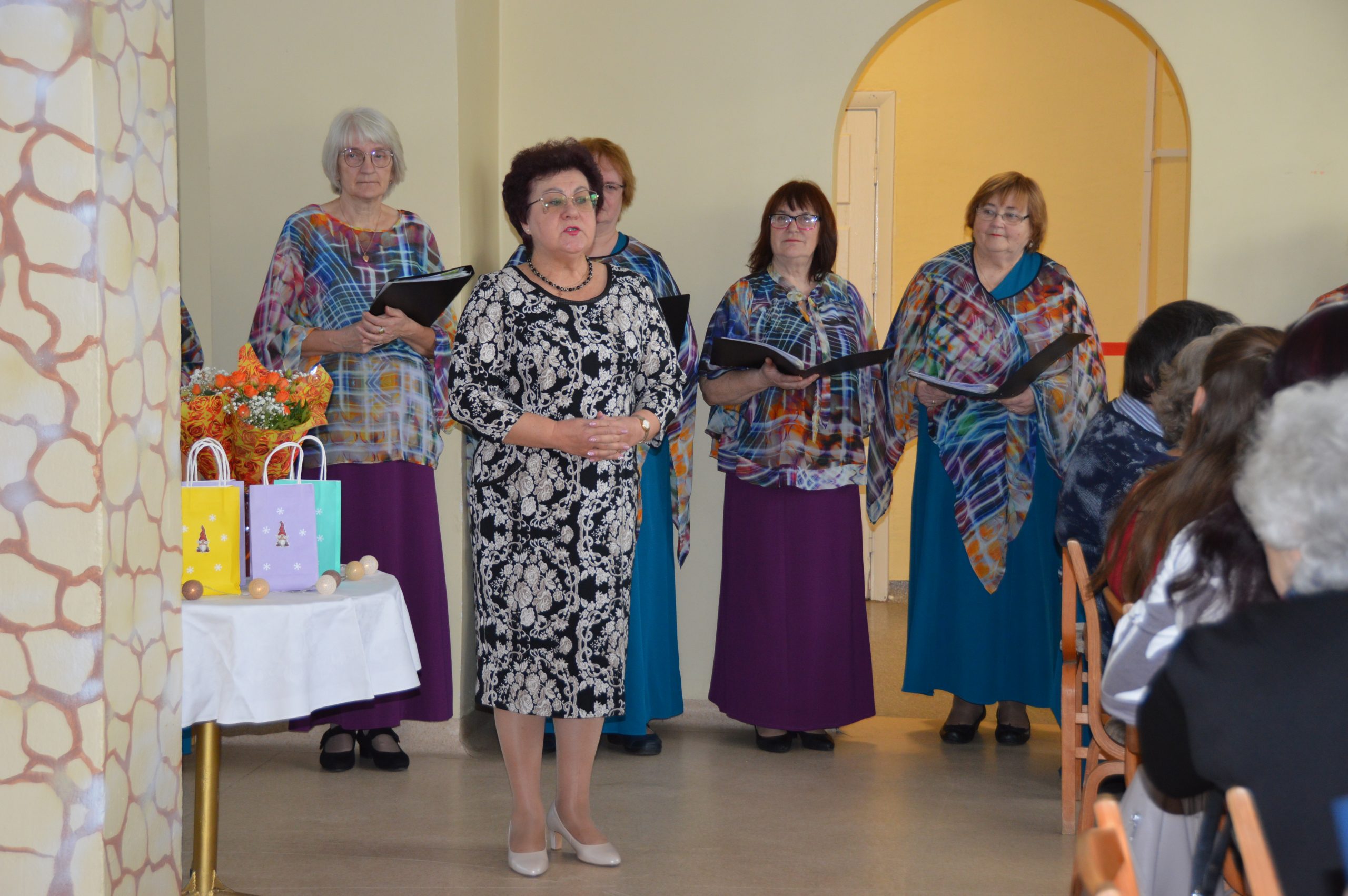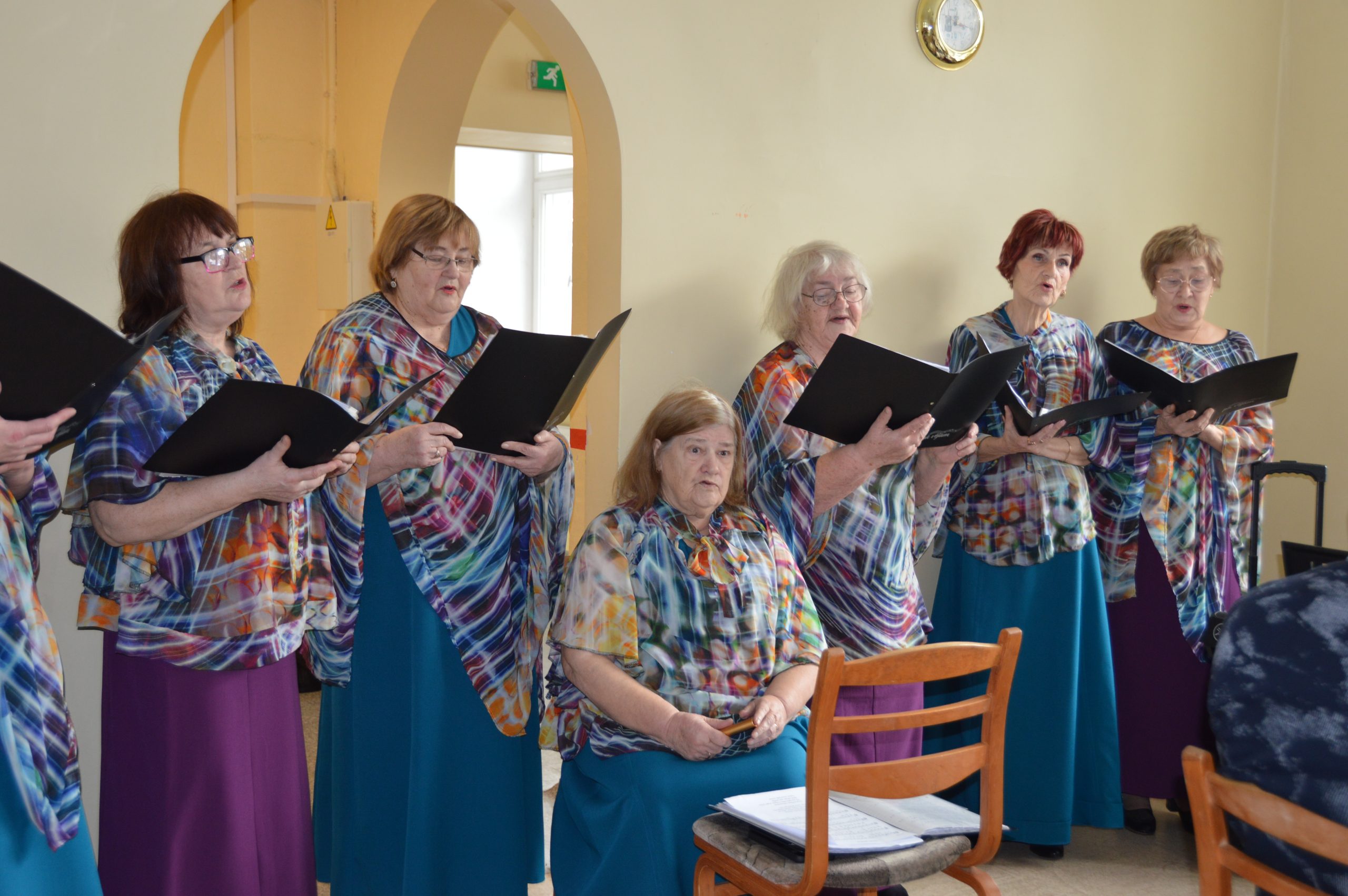 Ar muzikālu sveicienu biedrības biedrus priecēja Kuldīgas pilsētas pensionāru apvienības “Rumbiņa” senioru jauktais vokālais ansamblis “Pa vējam” Kristīnes vadībā.