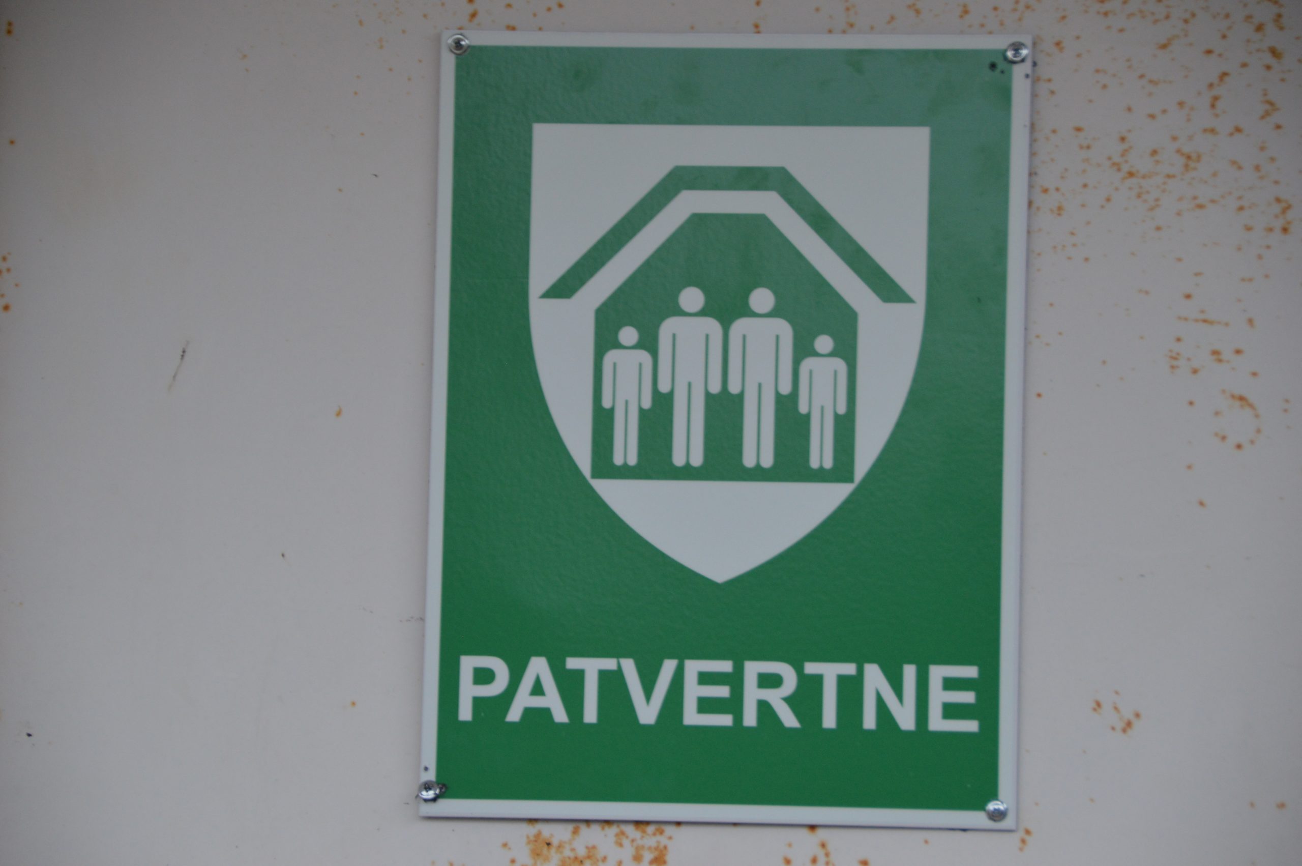 Pie šīm ēkām izvietotā zaļa informatīvas zīme, kurā redzami zem jumtiņa patvērušies cilvēki un uzraksts “Patvertne” norāda, ka apdraudējuma gadījumos iedzīvotājiem šeit ir pieejama īslaicīgā patvēruma vieta.  Zīme ir veidota no mehāniski un pret klimatiskajiem laikapstākļiem izturīga materiāla – ar alumīnija, kompozītmateriāla vai plastikāta pamatni.