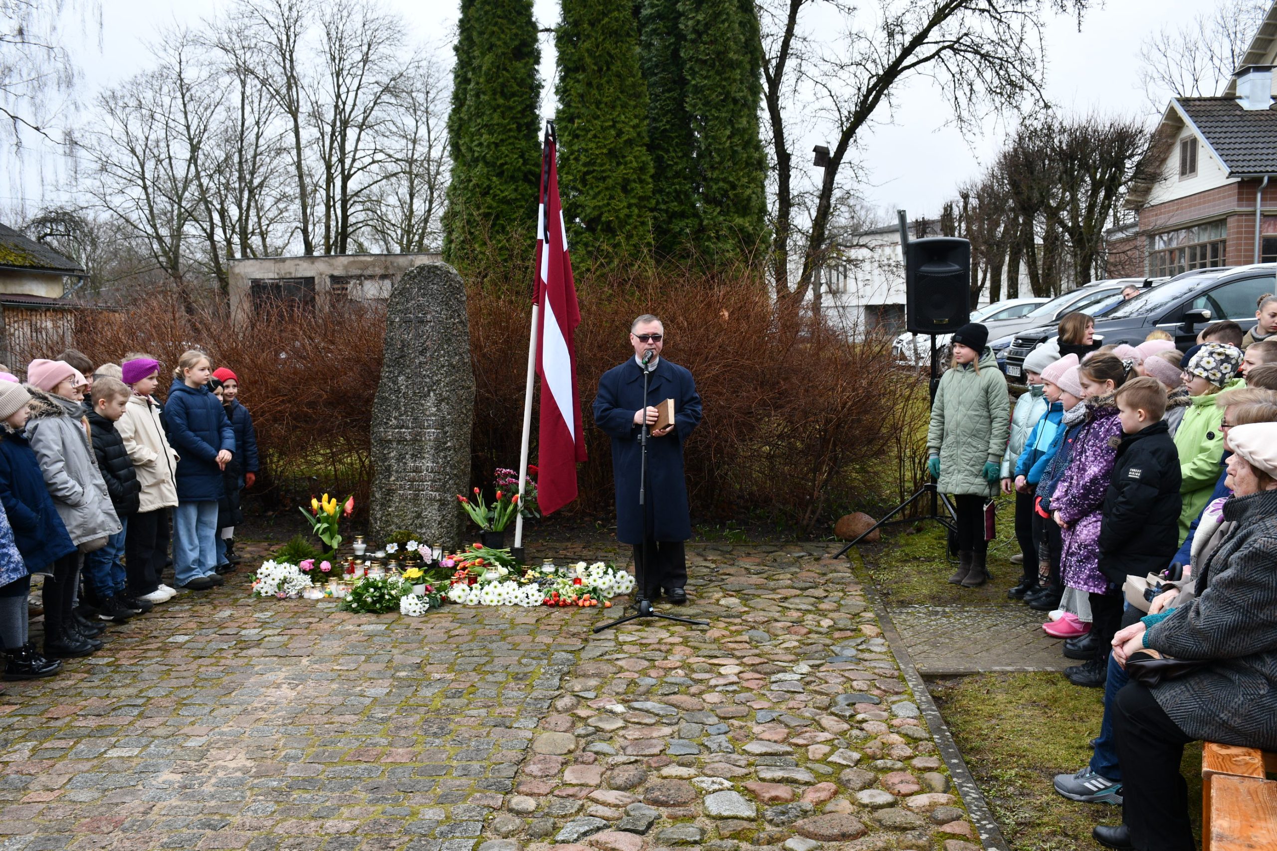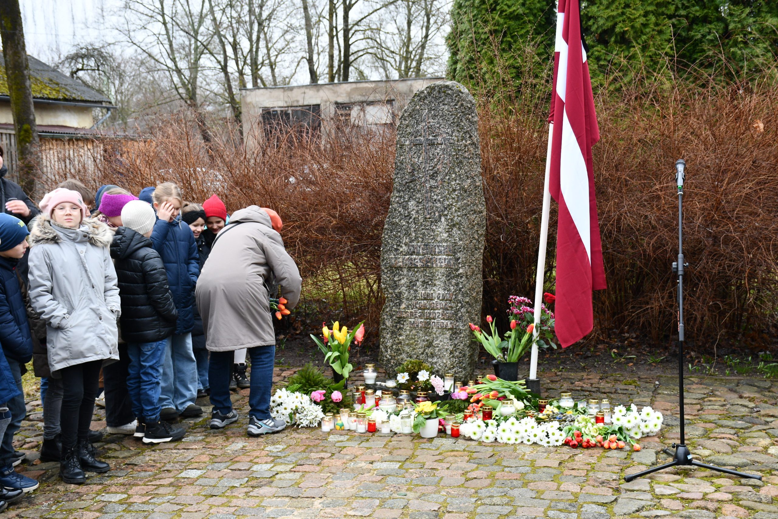 - Lēnās komunistiskā genocīda upuru piemiņas brīdis, ziedu un svecīšu nolikšana pie represēto piemiņas akmens norisināsies 12.45.
