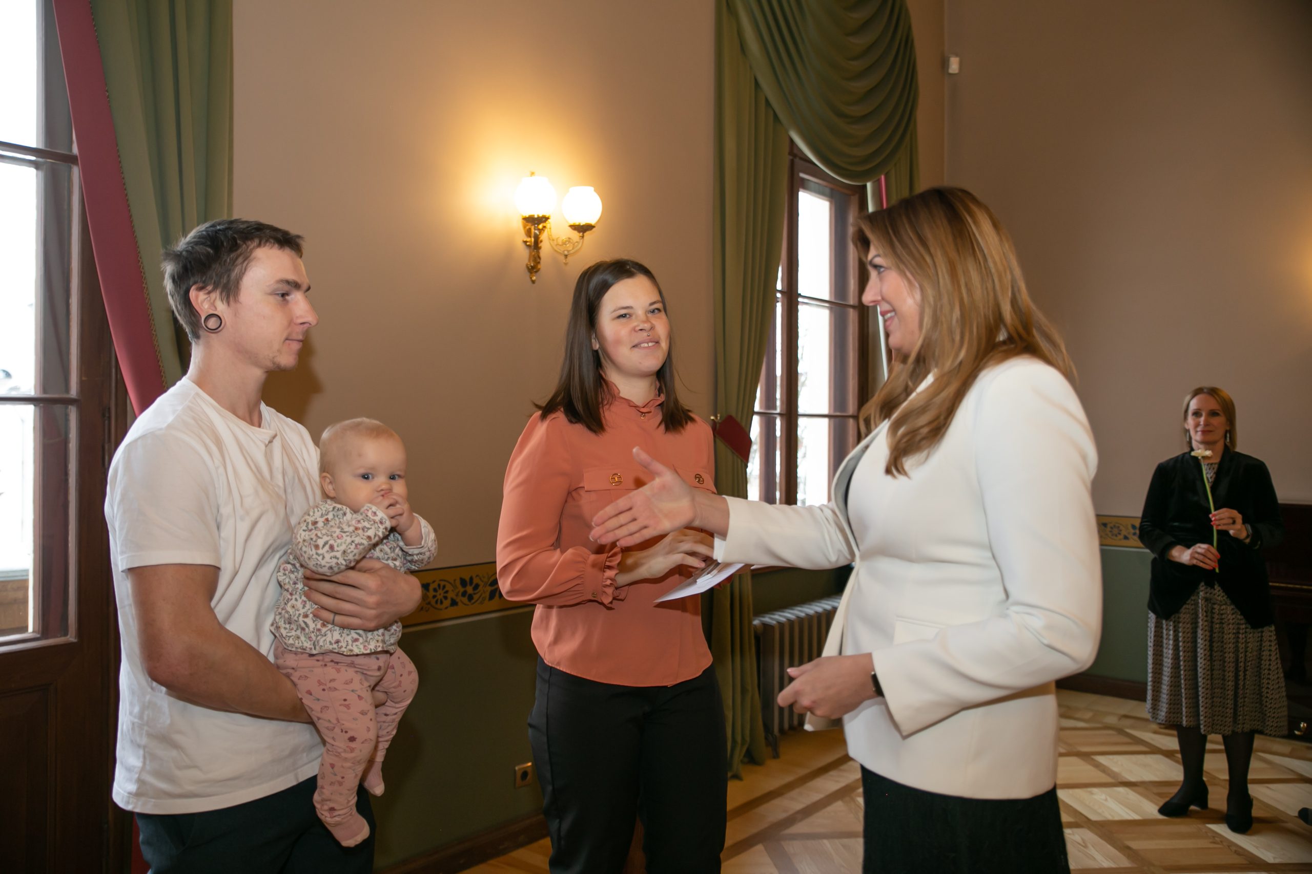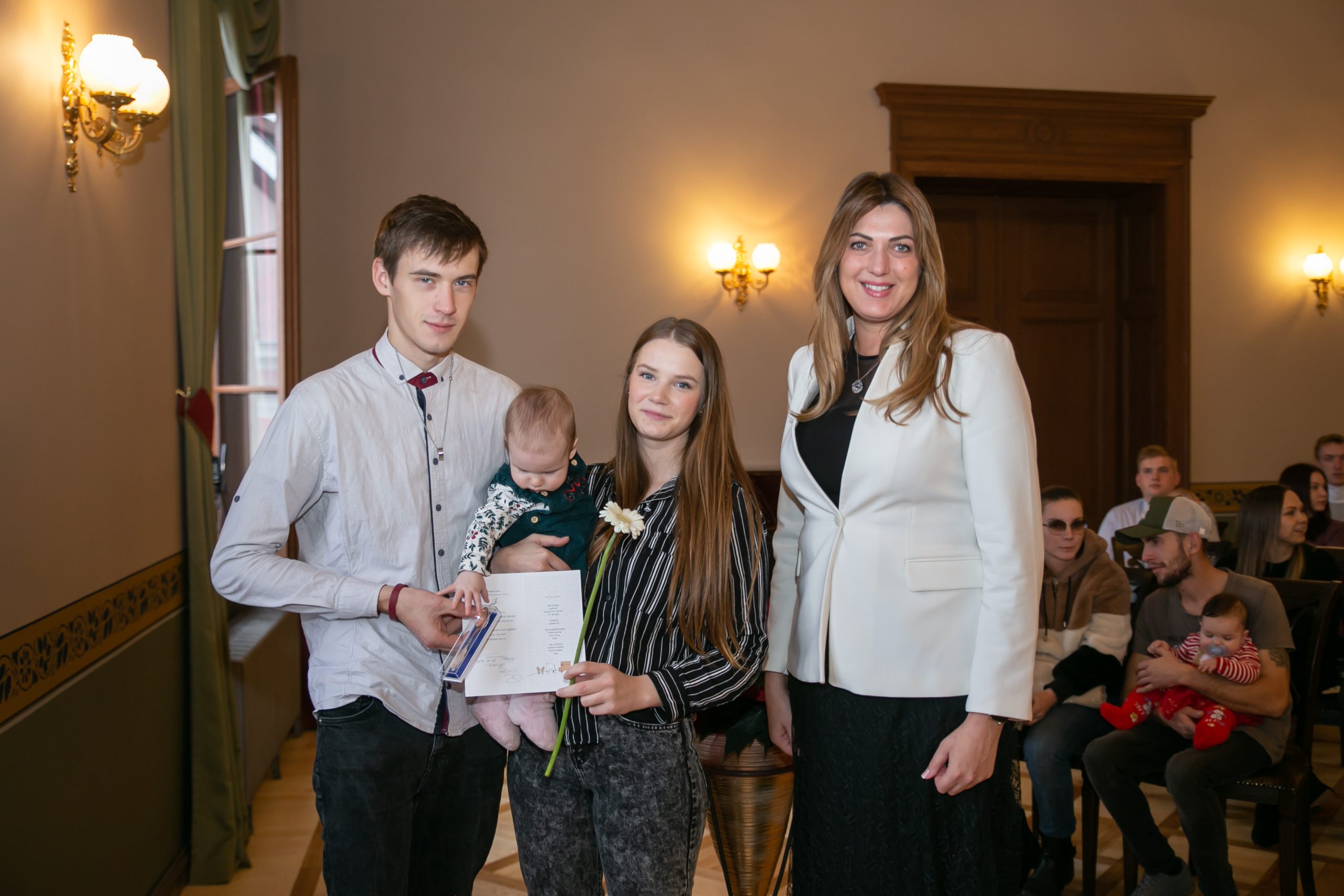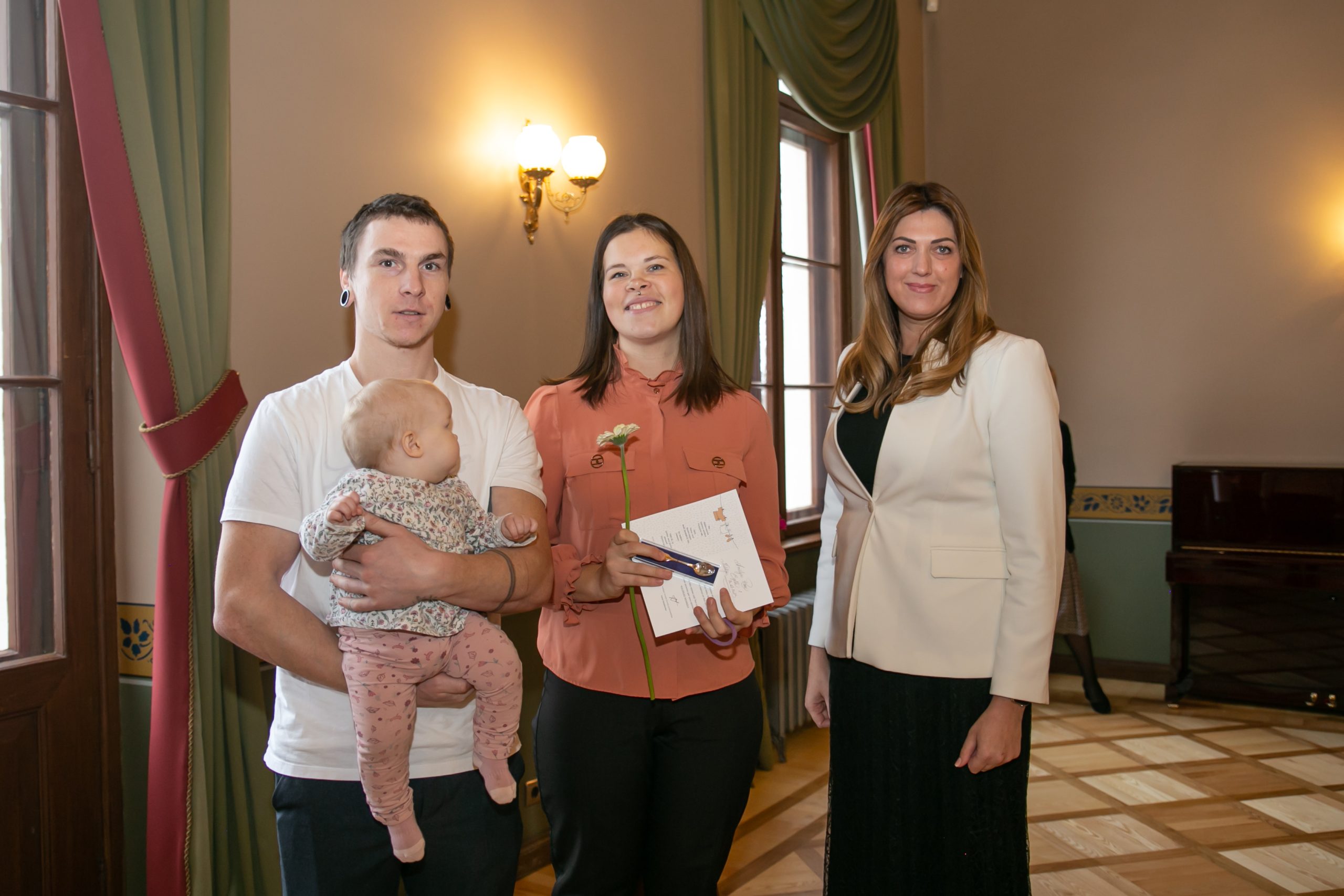 Šonedēļ Kuldīgas novada Domē viesojās paši jaunākie Kuldīgas novada iedzīvotāji – viņi kopā ar vecākiem, brālīšiem un māsiņām bija atnākuši pēc piemiņas dāvaniņas – sudraba karotītes, kas vienmēr atgādinās par dzimto vietu. Šī gada pirmajos sešos mēnešos Kuldīgas novada dzimtsarakstu nodaļā reģistrēti 139 bērniņi – 68 meitenes un 71 zēns, kas ir par 22 mazuļiem vairāk nekā pērn šādā pašā laika posmā.